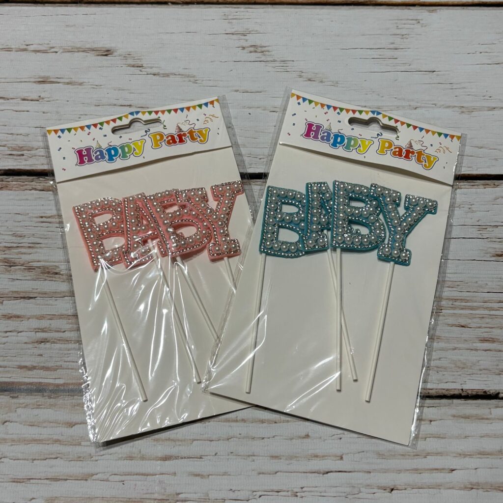 / Cake Topper 4 Piezas – Baby c/Perlas Celeste/Rosa IMP. 58998