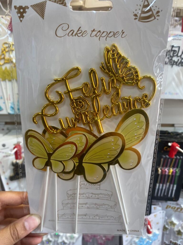 / Cake Topper Feliz Cumpleaños 3D Mariposas Doradas x 5 unid. IMP. 52407