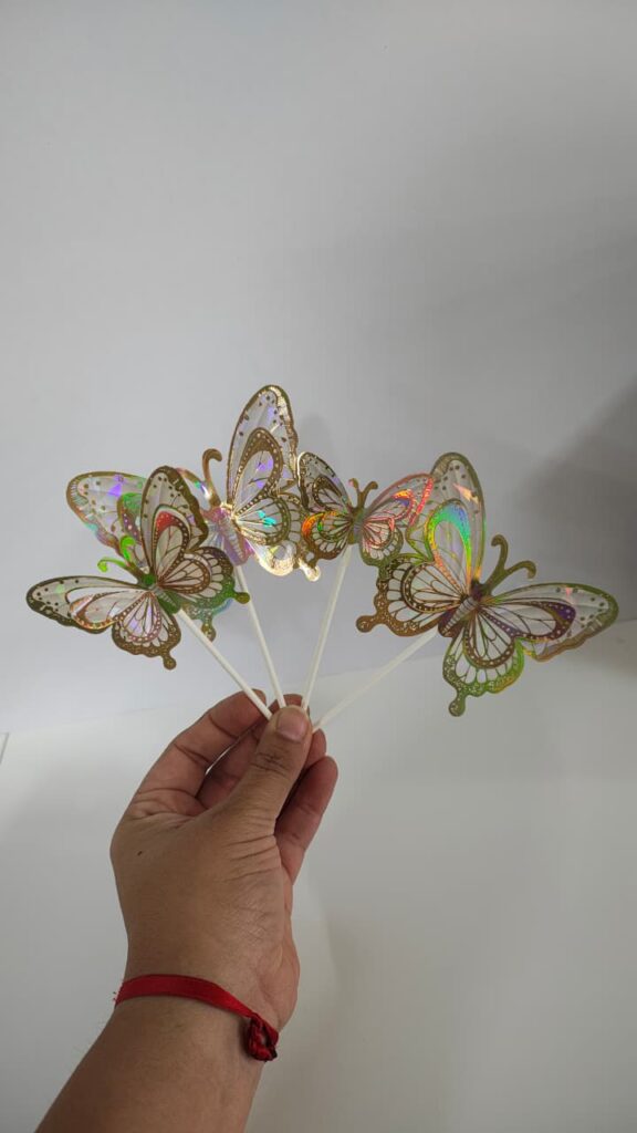 Cake Topper Mariposas Tornasoladas c/Dorado x 6 unid. IMP. 52414