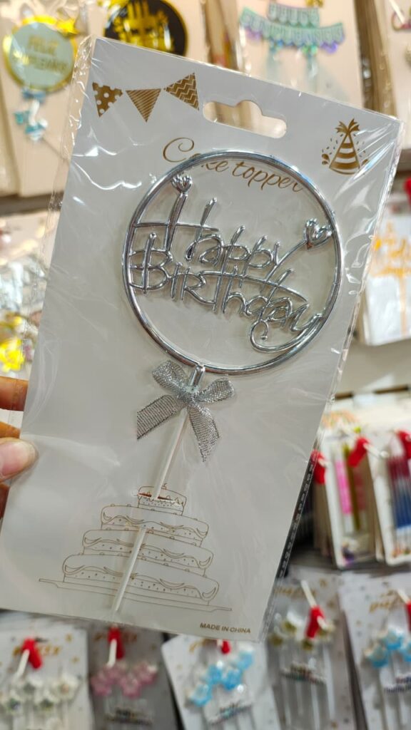 / Cake Topper Happy Birthday Metalizado Círculos Plateados IMP. 52413