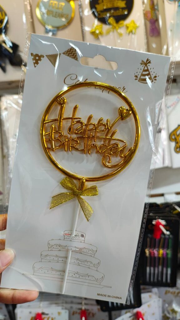 / Cake Topper Happy Birthday Metalizado Círculos Dorados IMP. 52412
