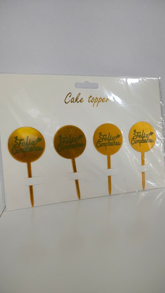 / Cake Topper Feliz Cumpleaños Círculos x 4 Unid. Dorado IMP. 52292