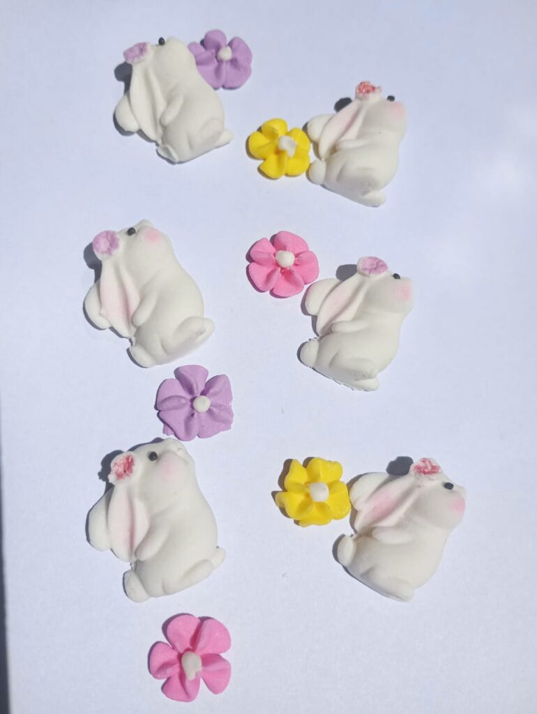 Kit Pascuas 2 pastillaje (6 conejos c/flor + 6 flores)