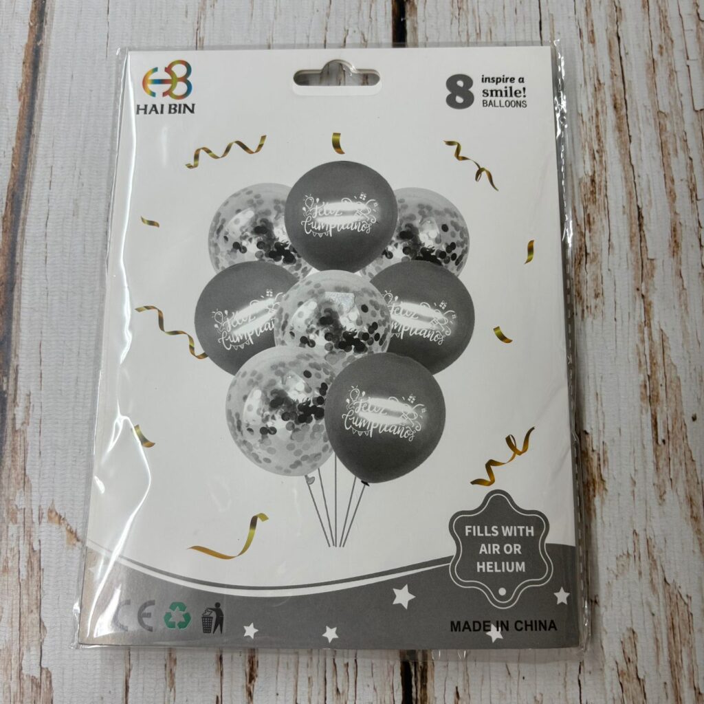 / Set de 8 Globos Perlados Feliz Cumpleaños Cristal con Confetti Plateado IMP. 57566