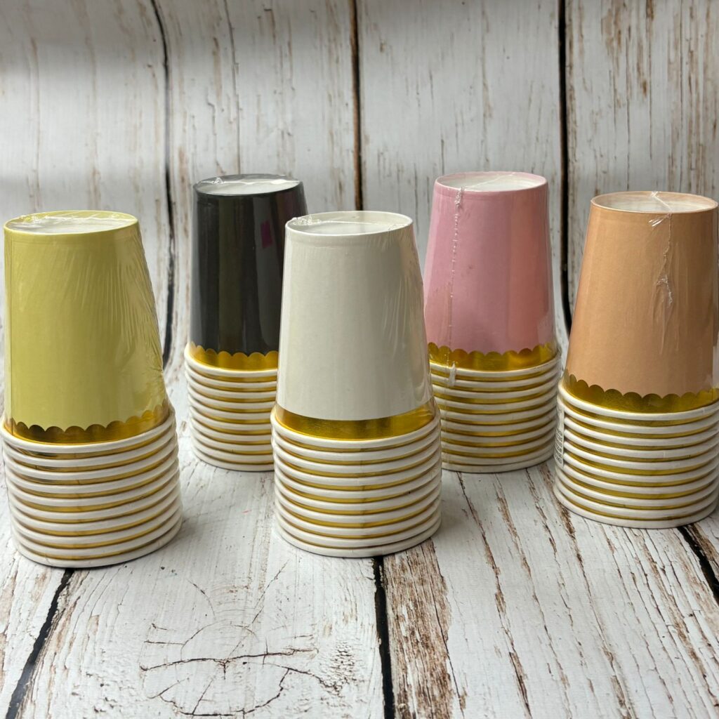 Vaso Polipapel Descartable de 250 ml. Liso con Dorado. Pack x 10 Unid. IMP. 57569
