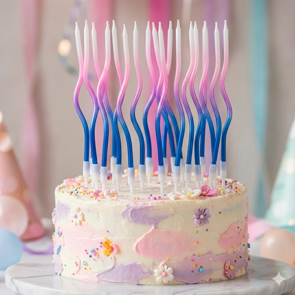 VELA C/ONDAS DEGRADE 3 COLORES CELESTE/ROSA/BLANCO x 12 Unid. IMP. 64223