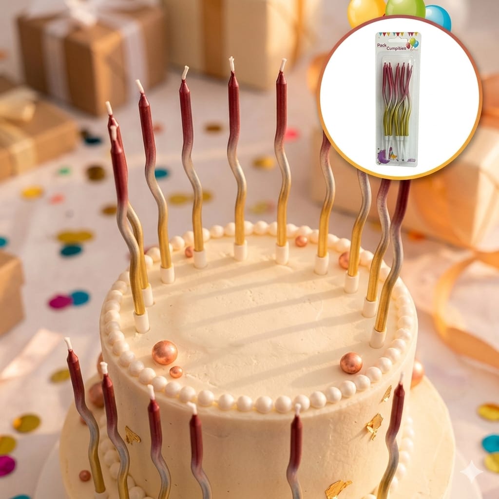 / VELA C/ONDAS DEGRADE 3 COLORES DORADO/PLATA/ROJO x 12 Unid. IMP. 64224