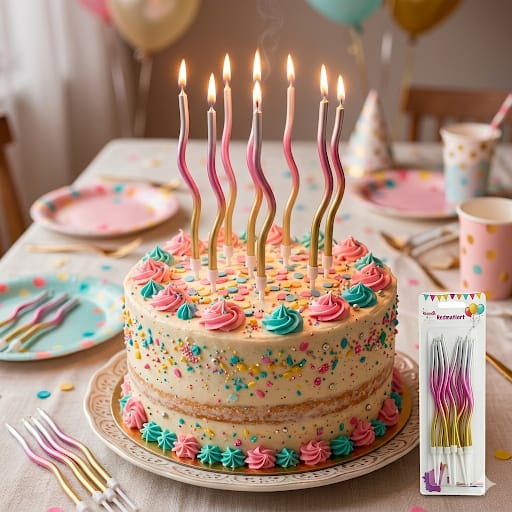 VELA C/ONDAS DEGRADE 3 COLORES DORADO/PLATA/ROSA x 12 Unid. IMP. 64225