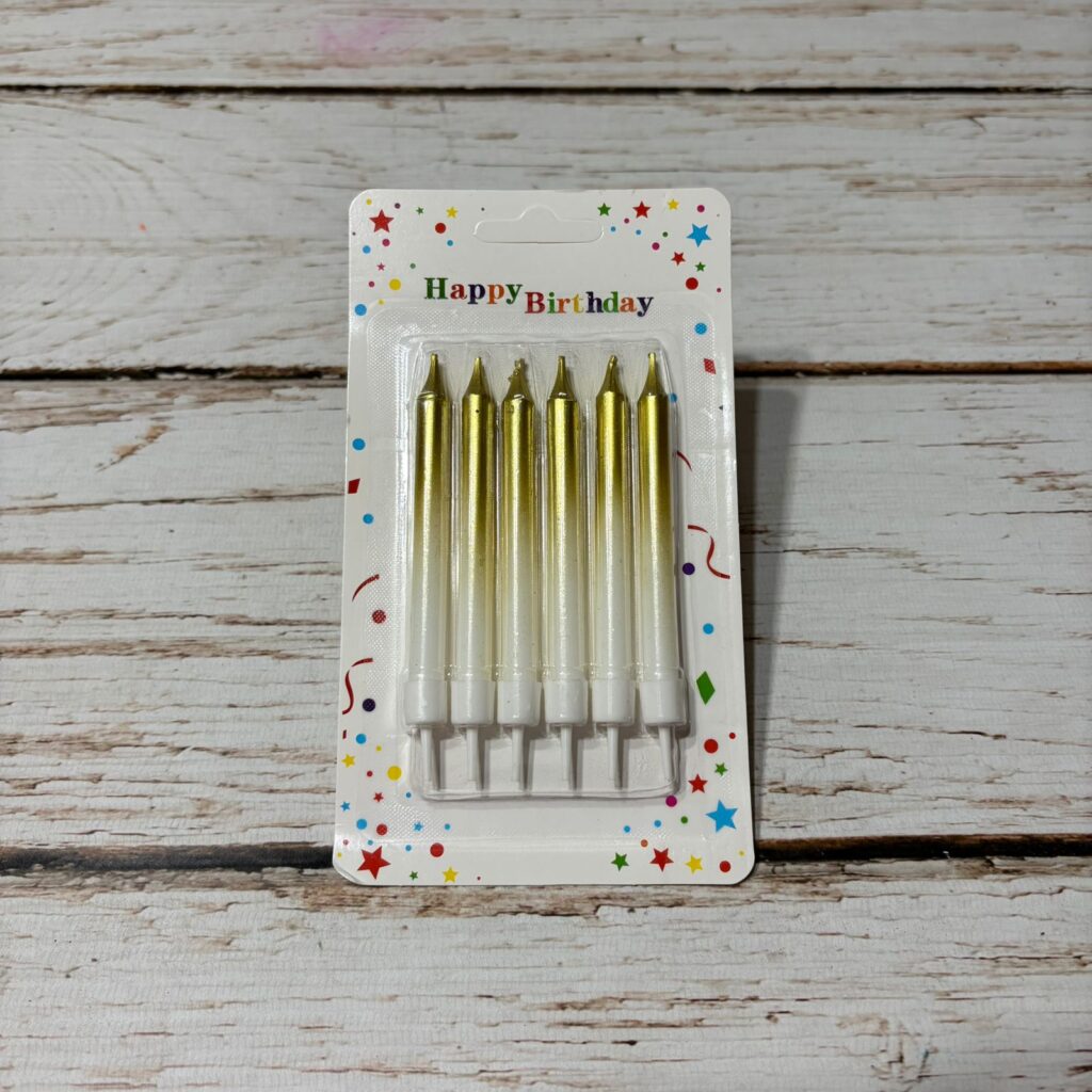 Vela Degrade c/Portavela 9 cm. x 6 Unid. Doradas IMP. 60269