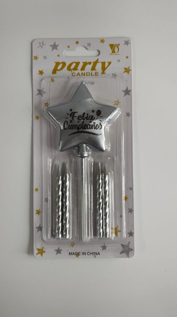 Vela Estrella Feliz Cumpleaños x 5 Unid. Plateada IMP. 46447