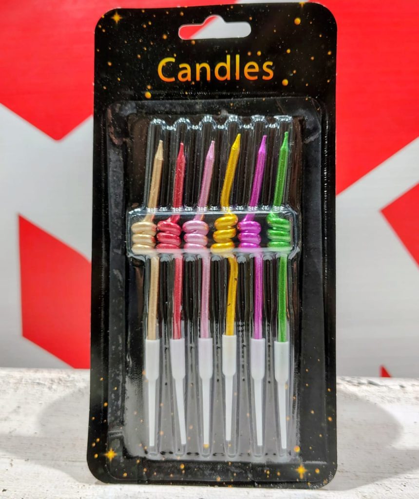 Vela Metalizada Resorte Multicolor 12 Cm. c/Portavela 6 Unid. IMP.44639