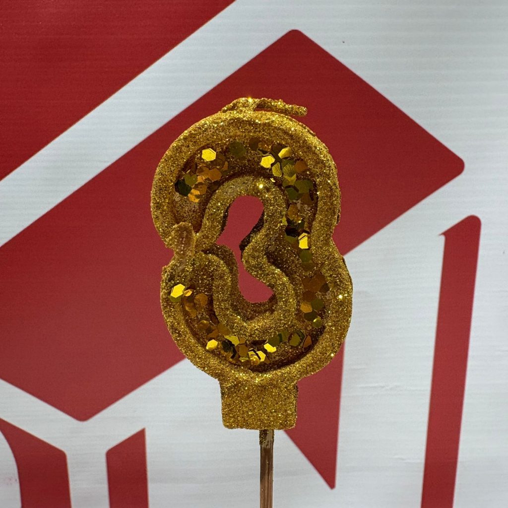 VELA NUMERO 3 GIBREADA CON PALITO 20 CM DORADO IMP,
